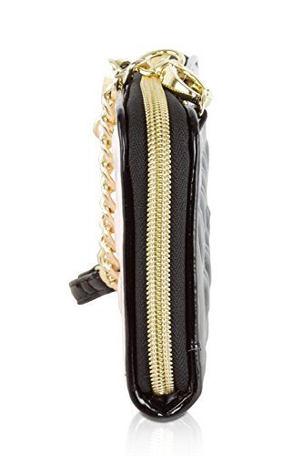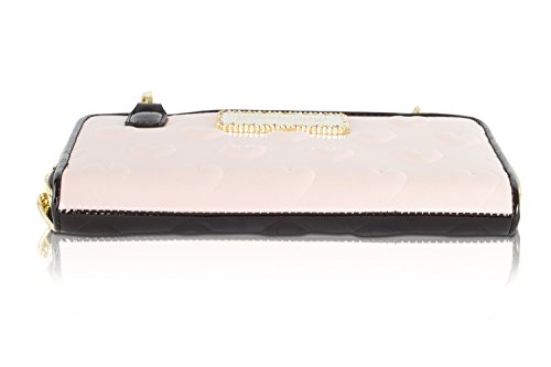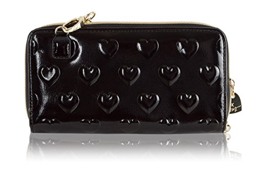 For the perfect blend of fashion and function, get the stylish Betsey Johnson WOS cross-body purse, this wallet is constructed of all Patent Heart print exterior with signature hardware, zip around closure. Gold metallic interior with coin zip pocket, bill pockets, 8 card slots and ID slot, the detachable chain detail crossbody strap with 23 shoulder drop offers security while wearing.