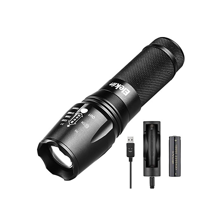 Elekin T01회중전등 2000루멘 충전식 라이트 18650 가충전 리튬 전지+전지 충전용 포토 부착 T6LED라이트 오토바이 홀더 IPX6방수 5모드