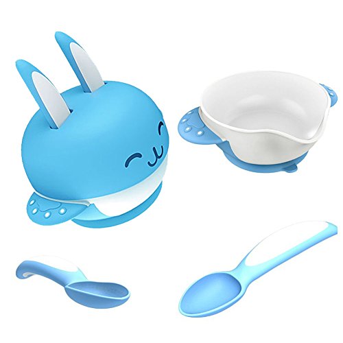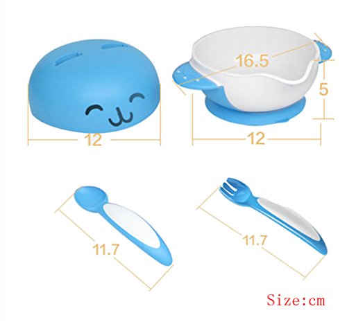 -. Feature : Material:food grade PP Bowl capacity:300ML Color:pink/blue / Safe, Cute rabbit shape design, fun to enjoy food, let the baby fall in love with dinner. / Dust Rabbit V-shaped spoon, according to the size of the baby mouth design, spoon handle according to the baby's small hand custom, easy to grasp, exercise the baby's grasp, hand-eye coordination. / V shape design of the mouth, according to the baby's mouth size design, easier to keep, leaky rice, exercise your baby's ability to develop the baby's intelligence. / Package include: 1 spoon+1 fork+1 bowl+cover