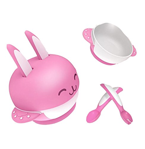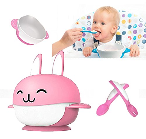 -. Title : Suzzo Rabbit Sucker Feeding Dish Baby Sucker Bowl With Spoon Fork Baby Food Tableware Kids Training Dishes Food Container