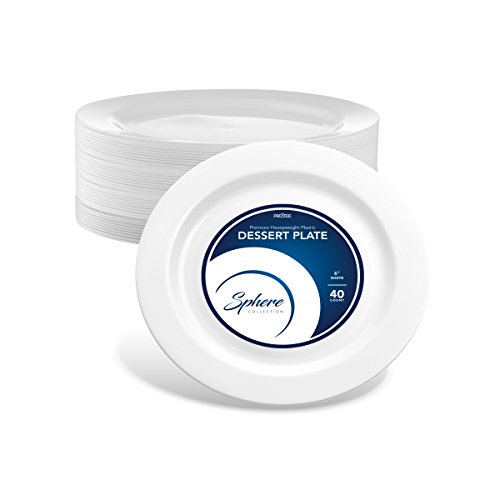 SPHERE Disposable Plastic Plates Dessert Plates Fancy & Elegant White Plastics Plates For Party Dinner Wedding Banquet Salad Appetizer Small Portions 40 Count | Heavy Duty Round Plastic Plates