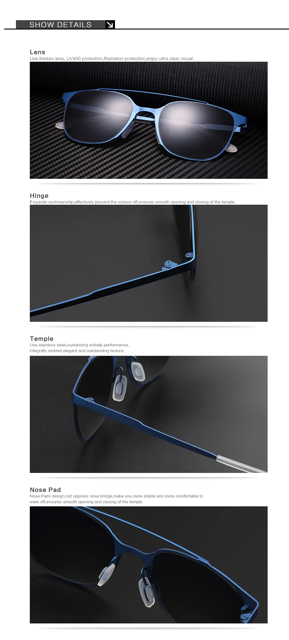 Sunglasses function:UV400,Anti-glare,Anti-radiation