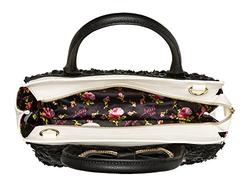 You'll paint the town chic with this stylish Betsey Johnson® Painted Floral Satchel. Made of synthetic leather. Zipper closure. Two rolled carrying handles. Exterior features an embellished bow detail at the front. Flat base. Lined interior features one zip and two slip pockets. Imported. Measurements: Bottom Width: 10 in Depth: 3 1⁄2 in Height: 9 in Strap Length: 47 in Strap Drop: 23 in Handle Length: 16 in Handle Drop: 6 in Weight: 1 lb 3.4 oz This product may have a manufacturer's warranty. Please visit the manufacturer's website or contact us at warranty@support.zappos.com for full manufacturer warranty details.Feature
