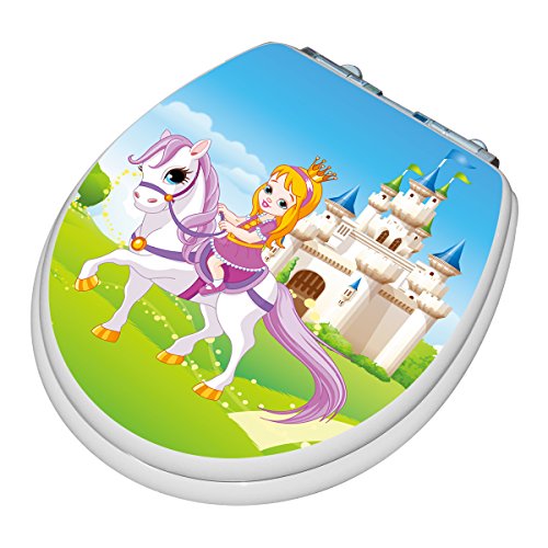 TOPSEAT TinyHiney Potty Round Toilet Seat, Adult/Child, w/ Slow Close Chromed Metal Hinges, Wood, Princess