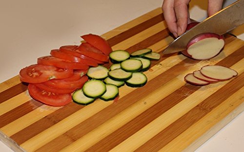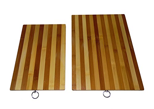 - Feature : The Bamboo Cutting Board Set features thicker boards with an attractive contrasting pattern / Manufactured with Renewable and Sustainable Bamboo. | Low Maintenance Due to the Hard Density of Bamboo / Superior Hygiene - Difficult Environment for Bacteria to Form due to hardness of wood / Dimensions: 11 x 15 and 8.5 x 11 - Not Oiled / Love it or Return it! Your Satisfaction is 100% Guaranteed on this Bamboo Cutting Board Set.