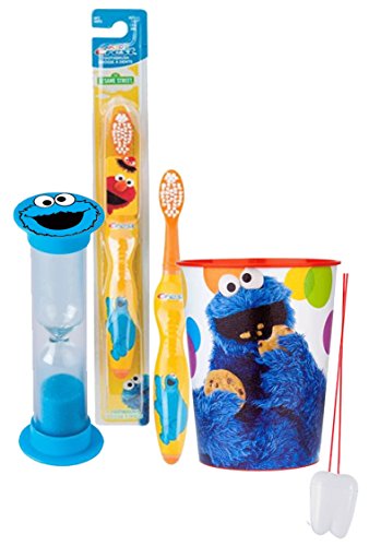 -. Title : Sesame Street "Cookie Monster" Inspired 3pc Bright Smile Oral Hygiene Set! Includes Soft Manual Toothbrush, Brushing Timer & Mouthwash Rinse Cup! Plus Bonus "Remember to Brush" Visual Aid!