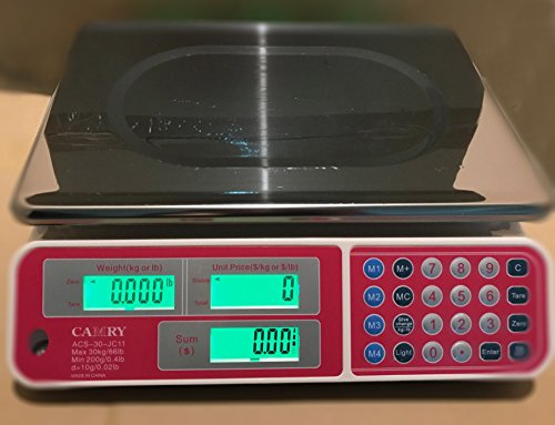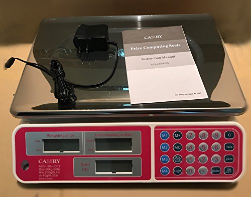 Studio : Camry Publisher : Camry Product Description Product Function: *High precision Strain Gauge Technology *Rapid price amount computing *Green backlight LCD display *Tare / Zero / Add-up / Total display / Clear Total *Dual-display: weight, unit price, amount *Money changes calculation *Framework structure with pressure-limit protection *Overload and low voltage indication *AC/DC charging with built-in rechargeable battery. *Automatic energy saving mode. *Four different unit price memories *Automatic temperutre compensation 0