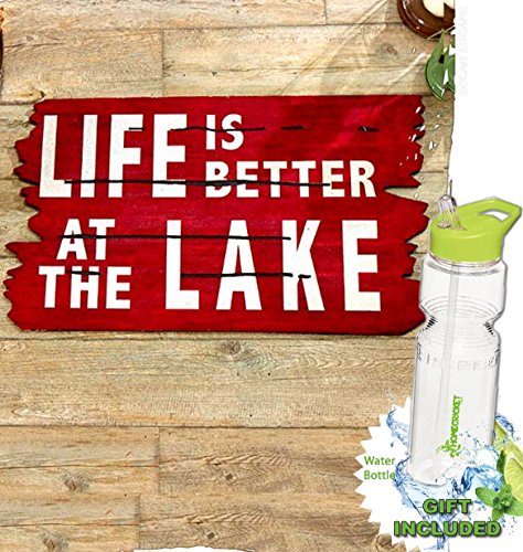 -. Title : Gift Included- Better at the Lake Front Door Floor Mat At-the-Shore Entrance Way Theme Doormat + FREE Bonus Water Bottle byHomecricket