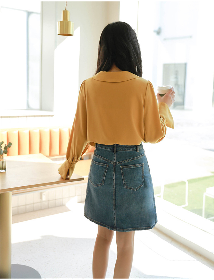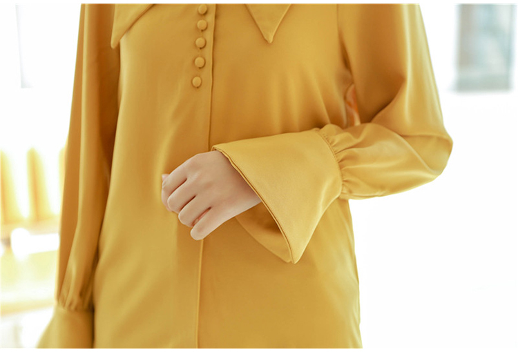 とろんとした生地感がフェミニンな長袖ブラウスのご紹介です。