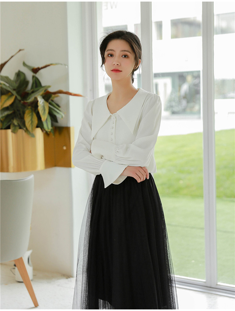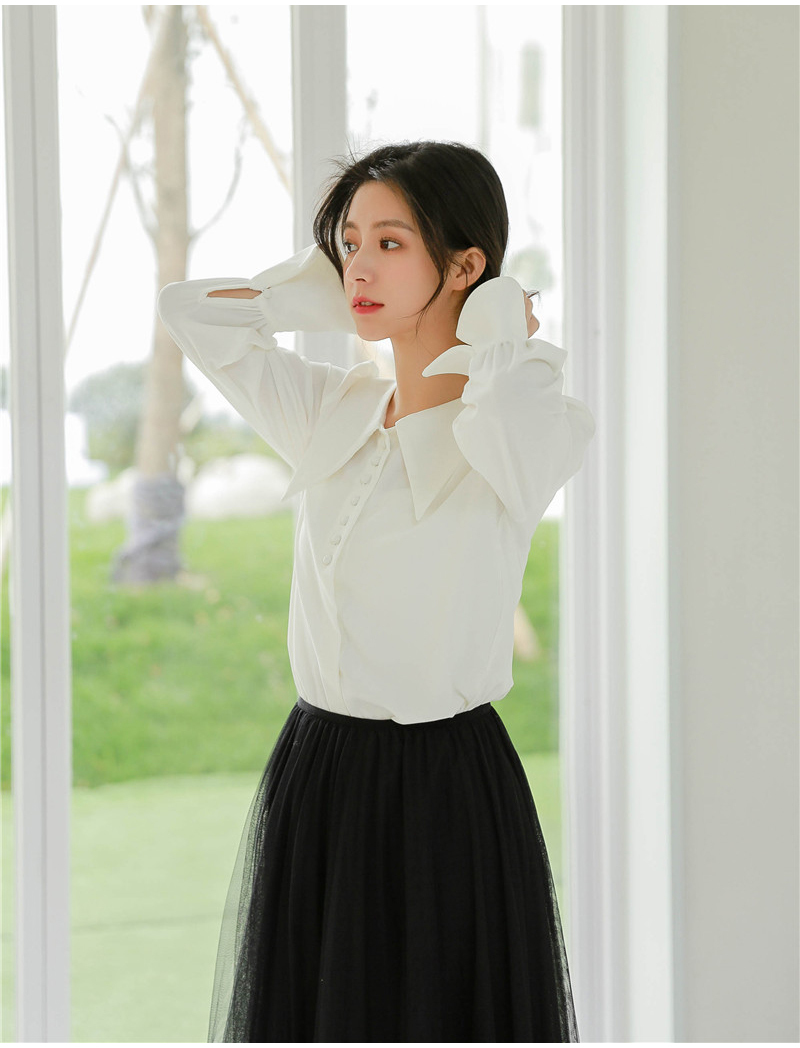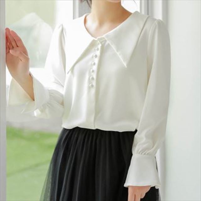 大きめの襟と広がった袖口が華奢見え&可愛らしさをプラス☆