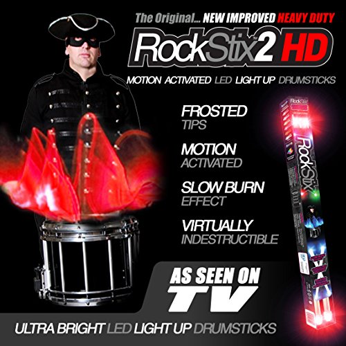 -. Title : ROCKSTIX 2 HD RED, BRIGHT LED LIGHT UP DRUMSTICKS, with fade effect, Set your gig on fire!