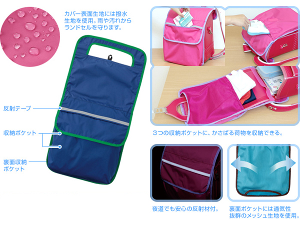 ●カバー表面生地には撥水生地を使用。雨や汚れからランドセルを守ります