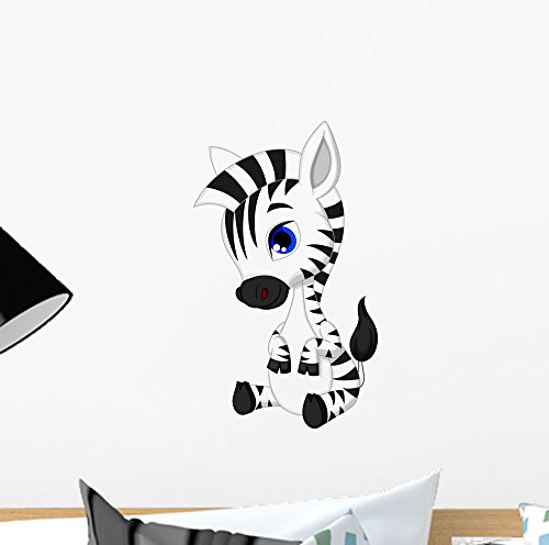 Wallmonkeys Cute Baby Zebra Cartoon Peel and Stick Wall Decals (12 in H x 7 in W)