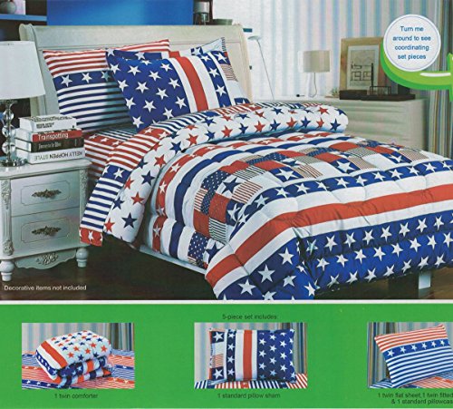 - Each set include 1 Twin Comforter 66"X86"(167.6cmX218.4cm),1 standard pillow sham 20"X26"(50.8cmX66cm),1 twin flat sheet 66"X96"(167.6cmC243.8cm),1 twin fitted sheet 39"X75" (99.1cmX190.5cm) & 1 standard pillowcase 20"X30" (50.8cmX76.2cm)