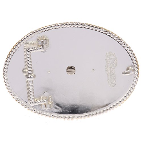 Studio : Beltiscool Publisher : Beltiscool Binding : Apparel Product Description Cowboy Up! Nocona designed this buckle for cowboys everywhere. This buckle is perfect with a silver background and gold soaring eagle figure and rope edges, round buckle trimmed in gold rope edging and on each side of the eagle are gold stars. Buckle Measures 4" x 3" with standard 1.5" Swivel 0