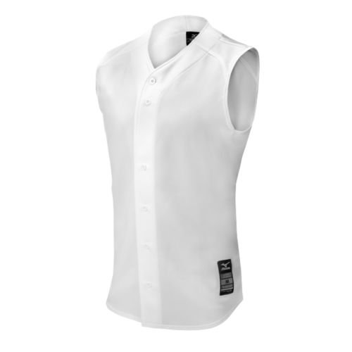 -. Feature : Durable double knit construction. / Sleeveless construction for improved range of motion. / Mizuno baseball label lower left front. / Mizuno Runbird logo embroidered on center back neck. / 100% DryLite Polyester Double Knit