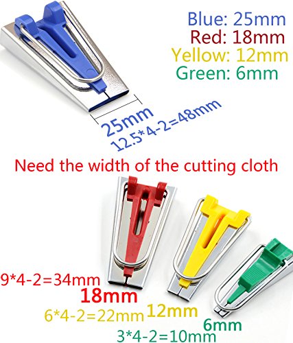 One set of 4 Sizes: green 6mm, yellow 12mm, red 18mm, blue 25mm,Suitable for sewing project, arts and crafts, perfect for making bias especially great in sewing and quilting, save your so much time on making bias tape