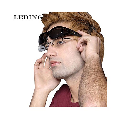 -. Feature : polarized sunglasses for men women ,Wear Over Prescription fit over Glasses nearsighted ,Outdoor Driving Protection glasses / LEDING sunglasses are UV400, 100% UVA and UVB and polarized for your eye protection! / They're lightweight and easy to slip on over your prescription glasses. You'll want to keep a pair in the car, office, house or wherever you need them! Lens Covers are designed to wrap around your face blocking the sun from the side as well; a practical alternative to expensive prescription sunglasses! Lens Covers sunglasses are polarized, providing increased clarity, reduced eye fatigue, and glare protection. / 100% RISK FREE PURCHASE - comes with a 1 year warranty on frames and lens as well as a 30 Day Money Back Guarantee when purchased from the Exclusive authorized seller on Amazon, So if you are not completely happy with your purchase for whatever reason, let us know and we'll take care of you. / PERFECT ALL ROUNDER - being Polarized and 400UV protection makes these sunglasses the perfect choice for outdoor sports and activities such as driving, fishing, skiing, travelling, hiking, boating, and is suitable as high fashion accessory and daily wear all year round. It is also gift packaged ready, making it a wonderful yet practical gift idea for friends and family!