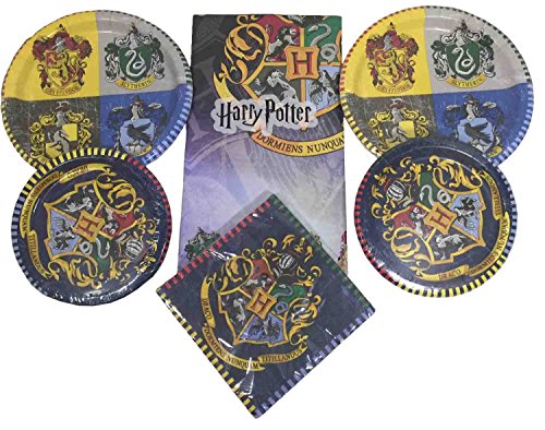 Harry Potter Party Supplies Pack For 16 Bundle - Includes Tablecloth, 16 Dinner Plates, 16 Dessert Plates, and 16 Dinner Napkins