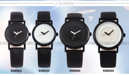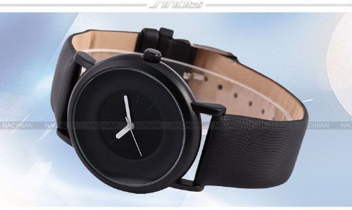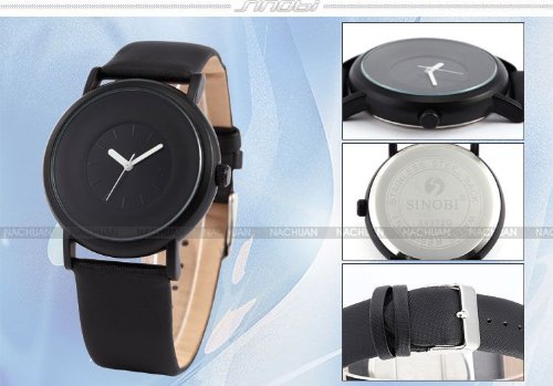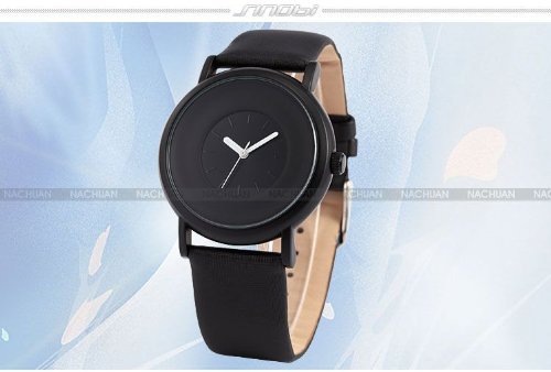 -. Title : SINOBI New Fashion Round Mens Women Unisex Black Leather Band Quartz Wrist Watch SNB004