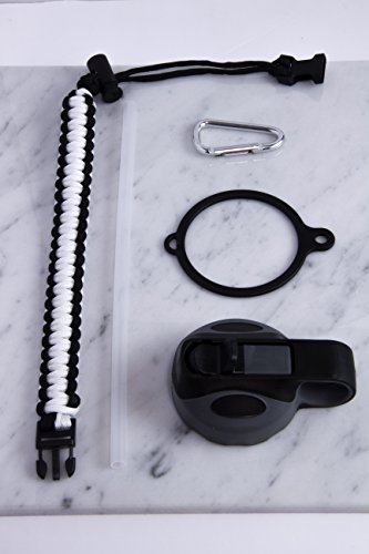 THE MOST COMPLETE HYDRATION UPGRADE PACK AVAILABLE. Kit includes: 1 High quality 500 + 350 Paracord Handle for all wide mouth bottles,1 Security Ring to firmly hold your Paracord Handle to the bottle, 1 Carabiner to attach your bottle to anything you like.