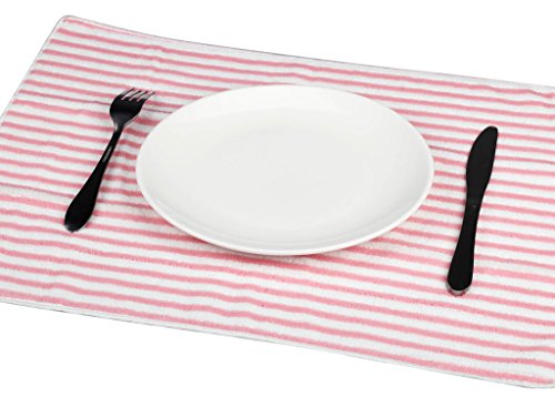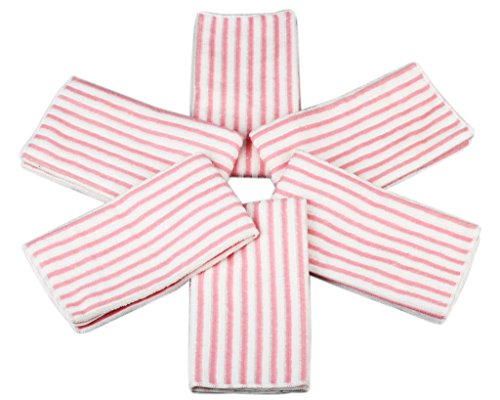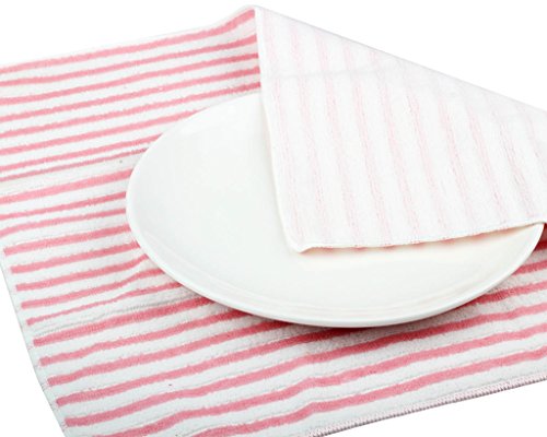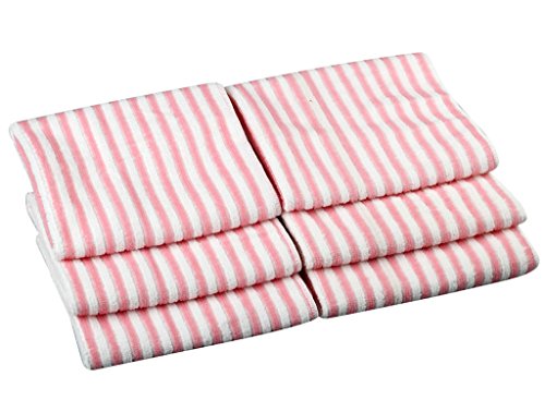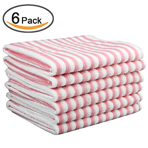 Kleanner Microfiber Striped Kitchen Dish Towel Tea Towel, Multi-purpose Aborbent and Fast Dry Cleaning Towel, Size 15 x 19 Inch, Set of 6 Packs ( Pink)