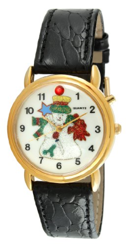 -. Title : Trax Frosty the Snowman Musical Christmas Watch with Black Leather Band - TR849