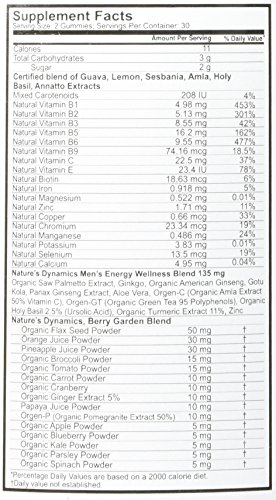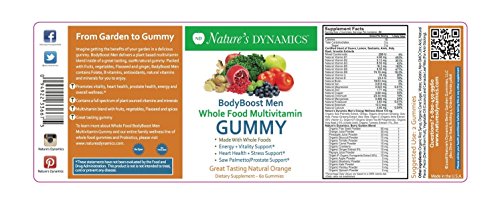 -. Feature : Men's Multivitamin / Contains a plant based, certified organic vitamin and mineral blend inside of a delicious, whole food gummy / Supports heart health, prostate health, energy, vitality, stress support, and improve overall wellness / Non-GMO ingredients, BPA Free, Gluten Free, Trans Fat Free, Soy & Diary Free / Great source of natural vitamins / Vitality and stress support, heart health / Blended only with certified organic ingredients