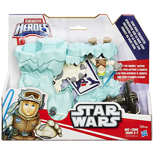 -. Binding : Toy -. Brand : Playskool -. EAN : 0630509294107 -. Feature : Re-positionable playset for epic adventures / Can work with the Endor Adventure set / Luke Skywalker figure sized right for young fans / Twist knob for Wampa "charge" / Includes playset, launcher, projectile, and Luke Skywalker figure. -. IsAdultProduct : 0 -. Label : Star Wars -. Manufacturer : Star Wars -. Model : B2031AS0 -. MPN : B2031AS0 -. PackageQuantity : 1 -. PartNumber : B2031AS0 -. ProductGroup : Toy -. ProductTypeName : TOYS_AND_GAMES -. Publisher : Star Wars -. Studio : Star Wars -. Title : Playskool Heroes Star Wars Galactic Heroes Echo Base Encounter -. UPC : 630509294107 -. Warranty : No Warranty