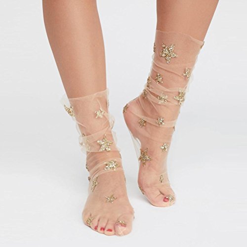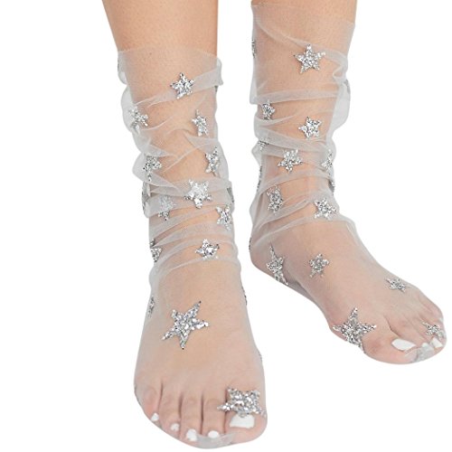 Inkach Women Glitter Star Mesh Socks - Trendy Girls Transparent Elastic Sheer Ankle Sock