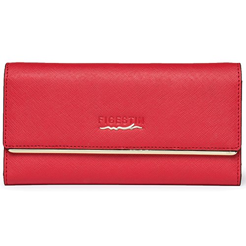 -. Title : [CLEARANCE] FIGESTIN Women Genuine Cowhide Leather Rfid Wallet Secure Zipper Credit Card Organizer Clutch long Purse