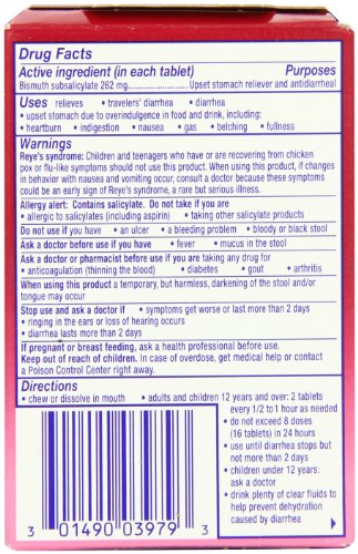 | Pepto-Bismol To-Go | InstaCool Chewable Tablets | Original Chewable Tablets | Cherry Chewable Tablets | Caplets | Children's Pepto Antacid | Original Liquid | |