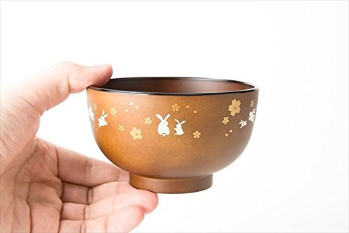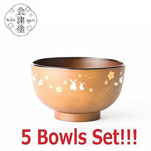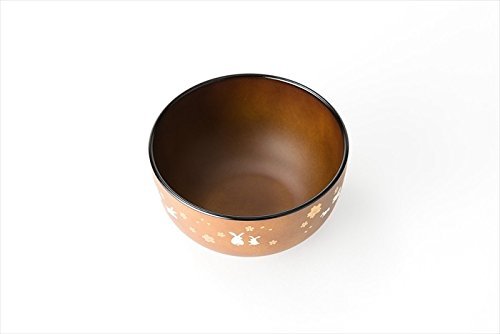 [5 Bowls Set] Asahi Kyouyou Japanese Brown Bowls with Sitting Rabbits & Flowers Set for Rice,Soup etc...