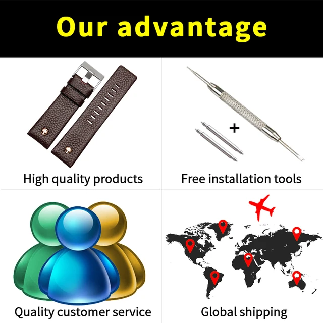 | [해외]정품 가죽 팔찌 DZ7313 DZ7322 디젤 DZ7257 남성 스포츠 시계 스트랩 액세서리 로즈 골드 나사 핀 버클 + 도구 |