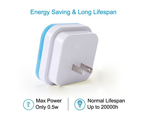 Energy Saving & Long Lifespan --- The max power is 0.5W. 12hrs each day, our night light consume only as low as 2.2 kWh annually. Long lifespan is up to 20000H. No bulbs replaced! No batteries need!