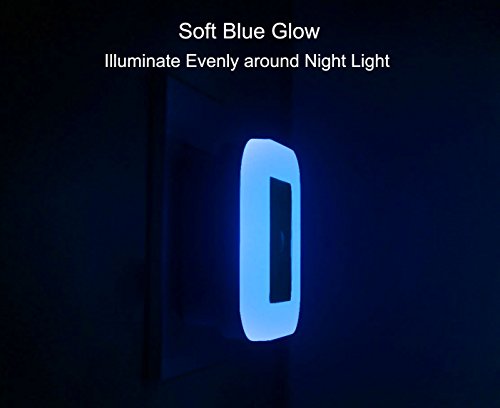Exact Brightness --- Waynewon night lights emit soft blue glow, just the right amount of light to see where you are going in the dark. Soft glow protects your eye from harsh bright light at midnight. Best bedroom, nursery, bathroom night lights