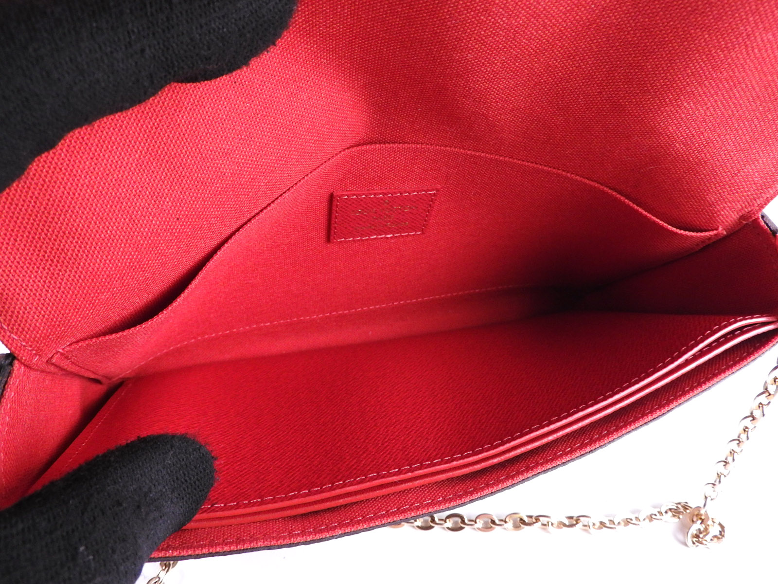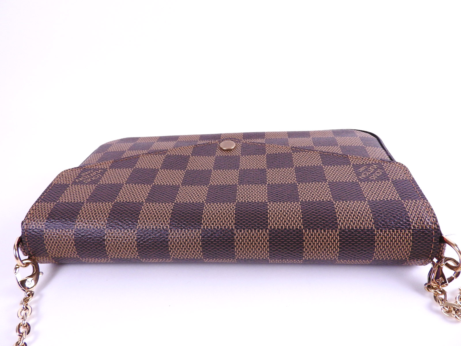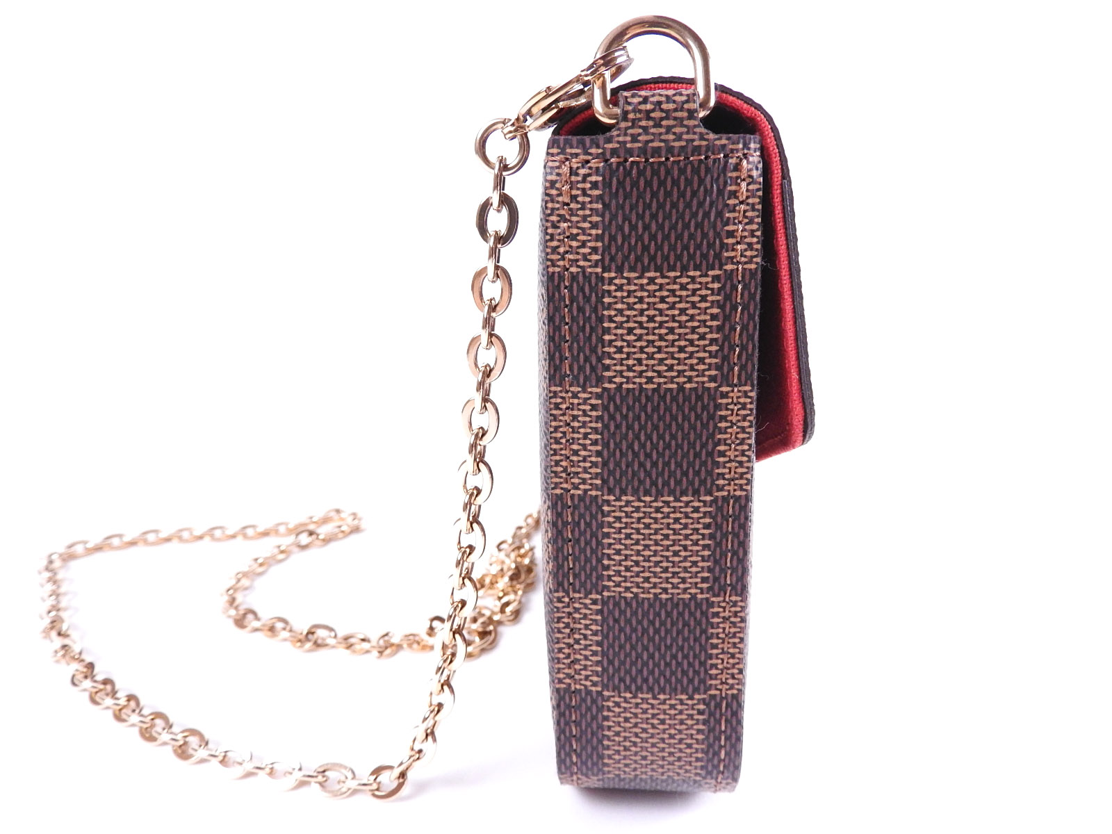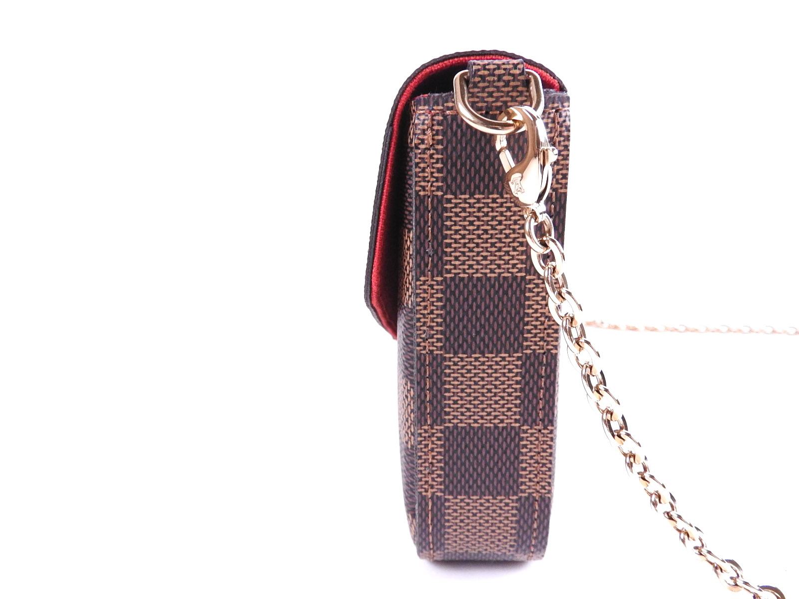 Auth LOUIS VUITTON Pochette Felicie Chain Hand Bag Shoulder Bag Clutch Bag Damier Ebene N63032 A-7915