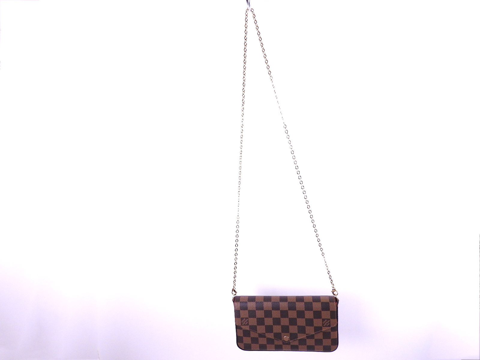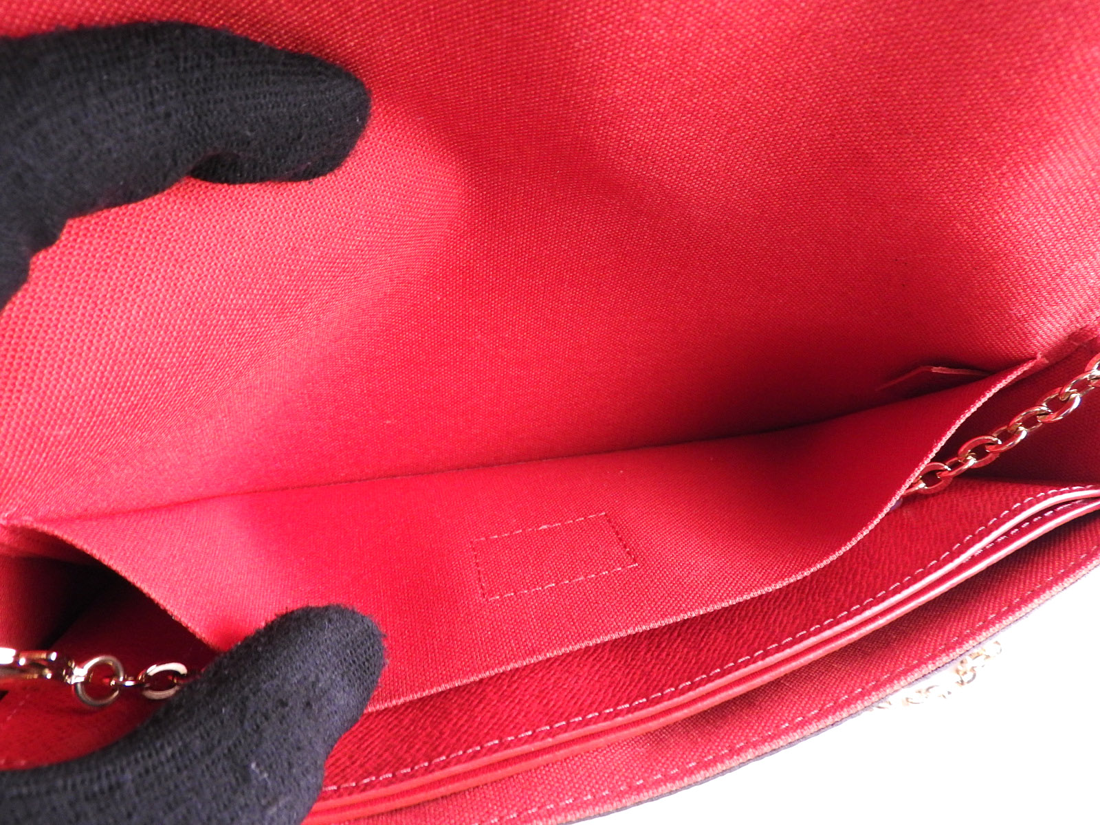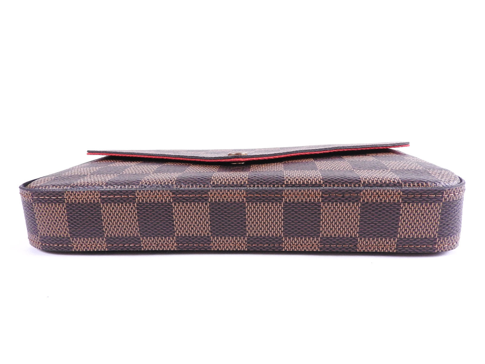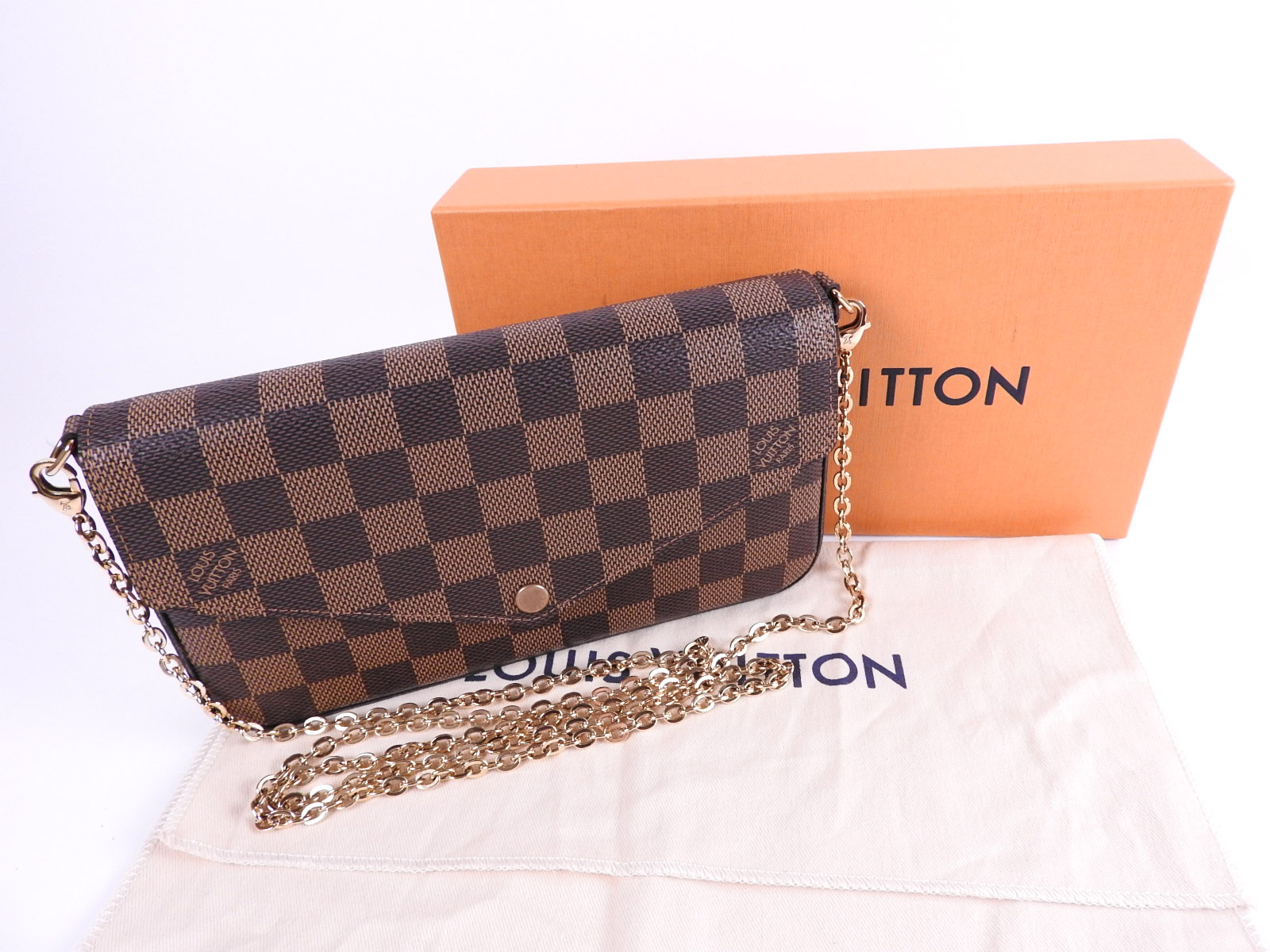 Auth LOUIS VUITTON Pochette Felicie Chain Hand Bag Shoulder Bag Clutch Bag Damier Ebene N63032 A-7915