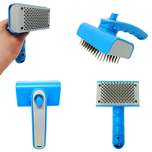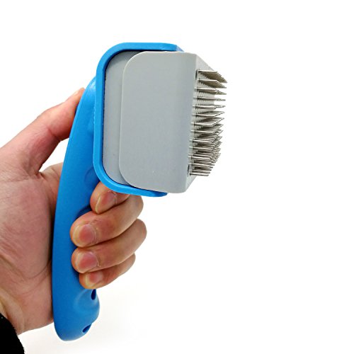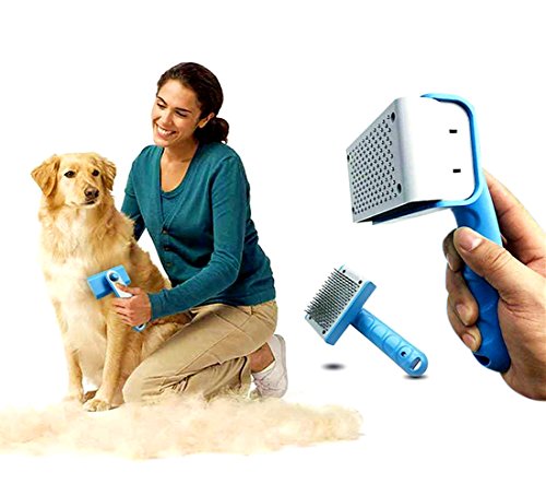 - SELF CLEANING DOG & CAT BRUSH: This dog comb removes shedding hair from your dog or cat leaving a healthy coat. CLEANS WITH ONE BUTTON: Gentle bristles retract with the push of a button instantly cleaning brush.