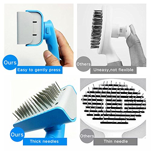 - SUPERIOR STAINLESS STEEL PINS, strong and elastic, gently remove dead hair, eliminates tangles, knots, dander and trapped dirt out of your pet's fur. At the same time give pet a comfortable massage and effectively stimulate the skin blood circulation.