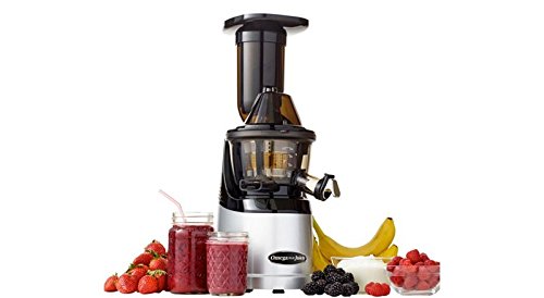The Omega MMV700S MegaMouth Vertical Low Speed Juicer. A powerful, low speed, masticating juicer that's quieter than high speed juicers. Comes with an Extra-Large 3" (7.6cm) feed chute that can fit most whole apples, oranges, cucumbers, kiwi, tomatoes, pears, etc. Less time spent cutting and prepping. Also comes with a juice spout tap which minimizes accidental dripping and spill.