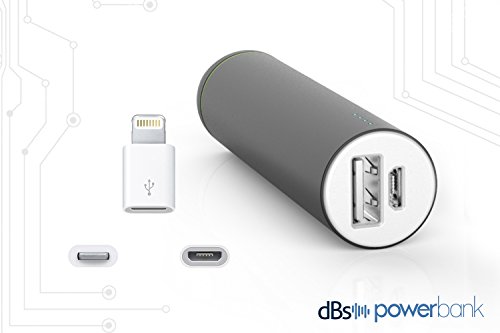 -. Binding : Electronics -. Brand : dBs -. EAN : 0636156774566 -. Feature : • COMPACT BATTERY CHARGER: Portable battery charger that easily fits into your pocket and is powerful enough to nearly charge an iPhone 6 / • PREMIUM INTELLICHARGE TECHNOLOGY: Use this smart external battery to charge smartphones and tablets / • ULTRA COMPACT: Light weight and recharges in 3-4 hours with the included Micro USB cable. / • ERGONOMIC DESIGN: Soft touch external rubber coating gives the aluminum casing a gorgeous feel. / • INCLUDES: dBs powerbank 2200 mAh Portable Charger, Micro USB cable, thunderbolt adaptor, convenient hand strap and dBs premium full replacement 12 month warranty -. Label : Direct Beat Systems -. Manufacturer : Direct Beat Systems -. PackageQuantity : 1 -. ProductGroup : Speakers -. ProductTypeName : BATTERY -. Publisher : Direct Beat Systems -. Studio : Direct Beat Systems -. Title : Portable Charger dBs Powerbank . External Battery Pack for iphone . Aluminuim Case 2200 mAH . Backup Phone Charger . Iphone . Intellicharge Mini Black -. UPC : 636156774566