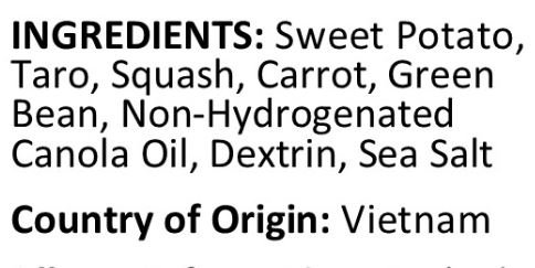 -. Feature : Country of Origin: Vietnam / Resealable Bag / Sweet Potato, Taro, Squash, Carrot, Green Bean
