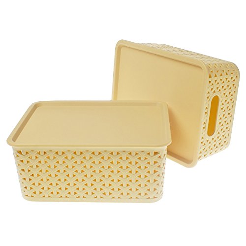 Saim Plastic Storage Containers with Lids Home Organization Office Desk Organizer Containers Stacking Clothing School Crafts 2 Pcs