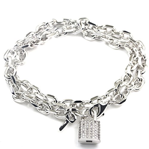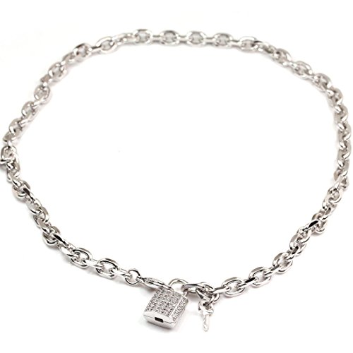 -. Binding : Jewelry -. Brand : FC JORY -. Department : Womens -. Feature : 17.5 INCH in length. / The lock is 0.75 inch in length and 0.4375 inch in width. / HIGH QUALITY white gold plated alloy / Matched bracelet in the same color is also available. -. Label : Fancy Collection -. Manufacturer : Fancy Collection -. ProductGroup : Jewelry -. ProductTypeName : FASHIONNECKLACEBRACELETANKLET -. Publisher : Fancy Collection -. Studio : Fancy Collection -. Title : FC JORY White Gold GP CZ Crystal Key Lock Links Charms Chain Locket Pendant Necklace