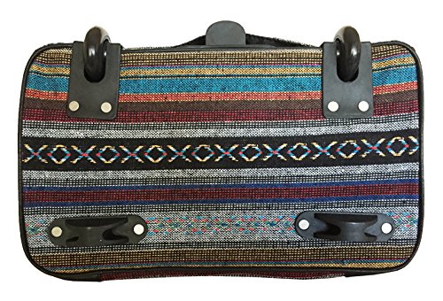 -. Binding : Electronics -. Brand : Trendy Flyer -. Color : Blue Red Yellow Black Grey -. EAN : 0746839982680 -. Feature : Color: Blue, Red, Yellow, Gray, and Black / Padded laptop area can fit laptop 12" wide, 12" tall and 2" thick using securing velcro strap. Padded laptop area can fit laptop 12" wide, 17" tall and 2" thick without using securing velcro strap. / Material: Polyester Canvas with Polyurethane Trim / Pattern: X's and O's / Size: 19" H x 17" L x 9" W / Weight: 4.5 lbs / Additional Info: Height From Top of Handle to Floor with Handle Fully Extended: 35" -. Label : Private -. Manufacturer : Private -. PackageQuantity : 1 -. ProductGroup : PC Accessory -. ProductTypeName : CARRYING_CASE_OR_BAG -. Publisher : Private -. Studio : Private -. Title : Trendy Flyer Computer/Laptop Rolling Bag 2 Wheel Case X's and O's -. UPC : 746839982680