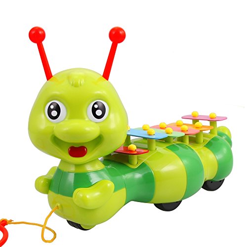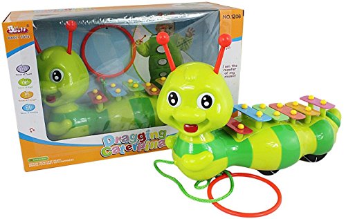 Lightahead® dragging caterpiller, a pulling toy for toddlers and kids. Lovely outlook; Sway function; Beat the music function; Dragging function. Caterpillar's head can be rotated. When you are dragging the string, the caterpillar will go swaying with nods. Colorful chips on the back of the caterpillar that can be used as a Xylophone to make a ringing sound of Music . The tentacles are beating sticks. 5 smooth wheels make the caterpillar move well. Material: ABS+PP. Please note that the actual product color may vary from the picture.Feature