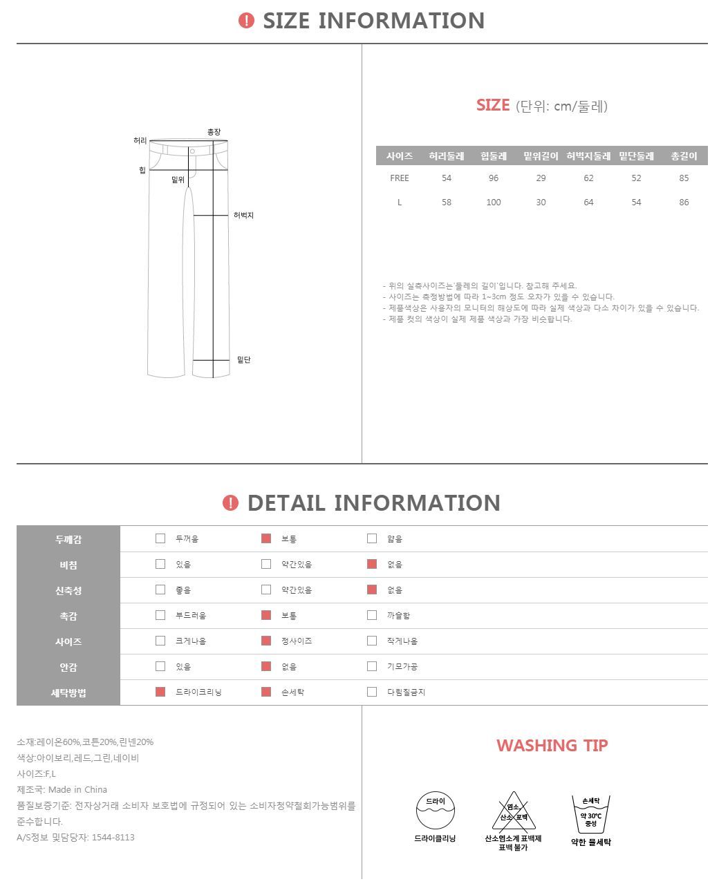 구성되어 있기 때문에 사이즈 마다 편안한 배기핏을 연출하실 수