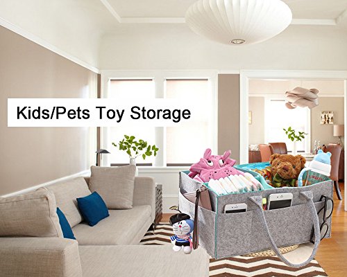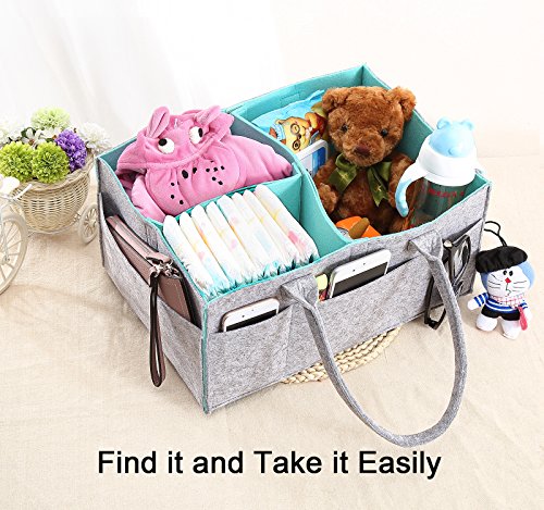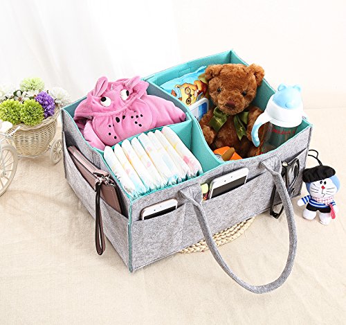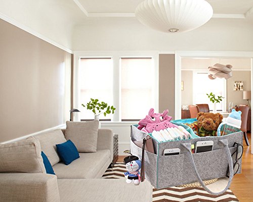 Use it to store baby toys, diapers, baby clothes, baby wipes, onesies, changing pads, medicine, and more! The diaper storage basket features the removable inserts to maximize versatility. Adjust the compartments according to your needs. It also includes 8 external pockets (6 smaller ones, 2 larger ones) on the outside of the basket for additional storage. Although the diaper caddy is designed mainly for baby storage purpose, you can also use it for your specific need, such as storing toiletries, pet toys and so on. A perfect baby shower gift! This Diaper Storage Caddy will help simplify a new mom's chaotic life on so many different levels. Any mom would be happy to receive such a thoughtful gift!