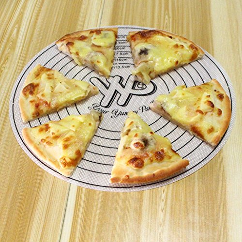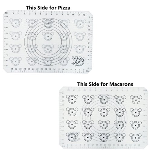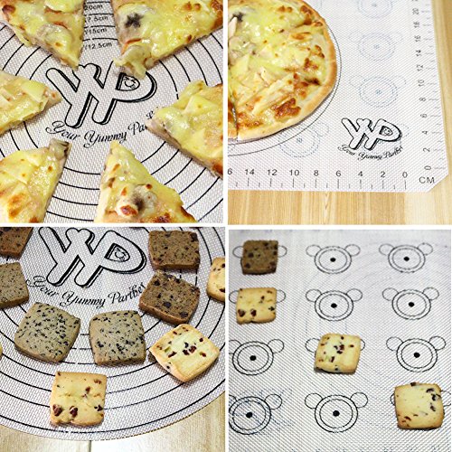 - Feature : Made of premium fiberglass and food grade silicone, 100% certified FDA food grade safe. Durable & Resistant, can withstand temperatures from -40 degrees F (-40 degrees C) to 446 degrees F (230 degrees C). Thick enough, durable, reusable for thousands of times. / PERFECT FIT: US standard half sheet size(11 5/8" x 16 1/2"), rectangular baking mat has convenient ruler(cm's & inches) and trimmed corners for rounded edges to fit standard size baking trays. Non Stick 11 5/8" round pizza mat has convenient ruler(cm's & inches), which is perfect to make different size of pizza for yourself, your family or your friends. / TRANSPARENT, NEW FASHION, MODERN DESIGN. A ideal gift for baking lovers. The YYP Transparent baking mats look so creative so that every people will be asking you about it when coming over. / No need for oil, butter, cooking sprays, or parchment paper for healthier guilt-free eating. Dishwasher safe, easy to clean. / Pack Included: 1 x standard half sheet(11 5/8" x 16 1/2"), double side templates(one side for 9" pizza, the other for macaroons); 1 x round(11 5/8") pizza baking mat.